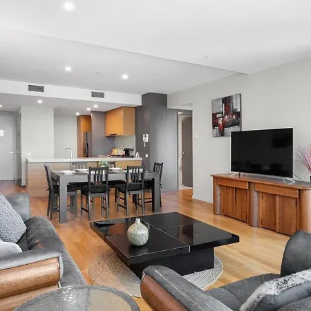 Situé dans le quartier "central des affaires de Melbourne" à Ville de Melbourne, Appartement Harbourfront Urban Oasis à Ville de Ville de Melbourne spacieux se trouve à moins de 700 mètres du Quartier de Waterfront City et à 800 mètres d'Etihad Stadium, recommandé aux amateurs de sport. Doté d'un jardin, le domicile de 82 m^2 donne sur la mer et est niché à quelques minutes du Monument Park.